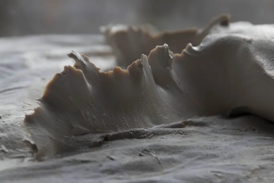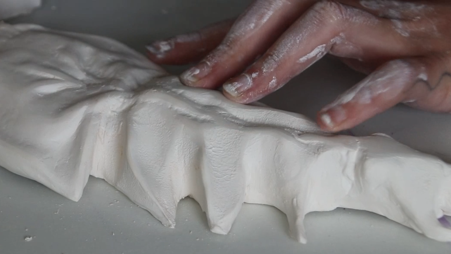 À travers les concepts d’écotone, de zone [Jeanne Etelain] d’agencement polyphonique [Deleuze & Guattari puis Anna Tsing] ou encre de pluri-vers [Arturo Escobar], j’interroge la manière dont nous habitons les milieux. À travers mes pièces je cherche à traduire la porosité du monde : elles se dérobent, se déposent, s’effritent, se détachent. À l’image des Mésanges que je façonne du bout des doigts, mes sculptures tiennent dans la main autant qu’elle débordent l’espace. À l’image des glaciers que je capte à la source, mes plans vidéos s’étirent dans le temps, jusqu’à frôler l’immobilité.
